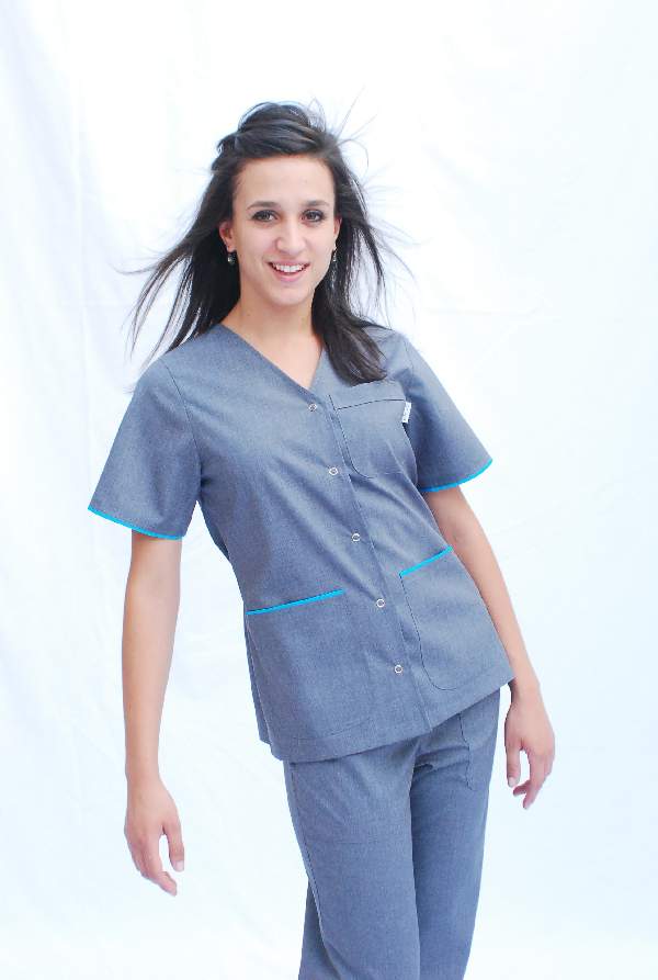 chaqueta escote en V, vivos en mangas y bolsilos, tiras ajustables